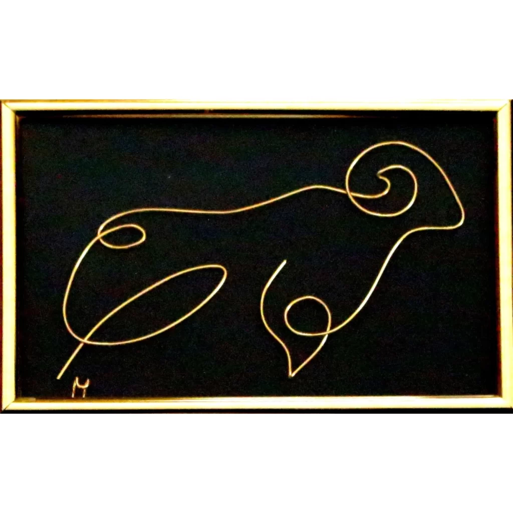 Zodia Pesti – Tablou in fir continuu de sarma auriu de 1 mm, rama neagra 20×15 cm