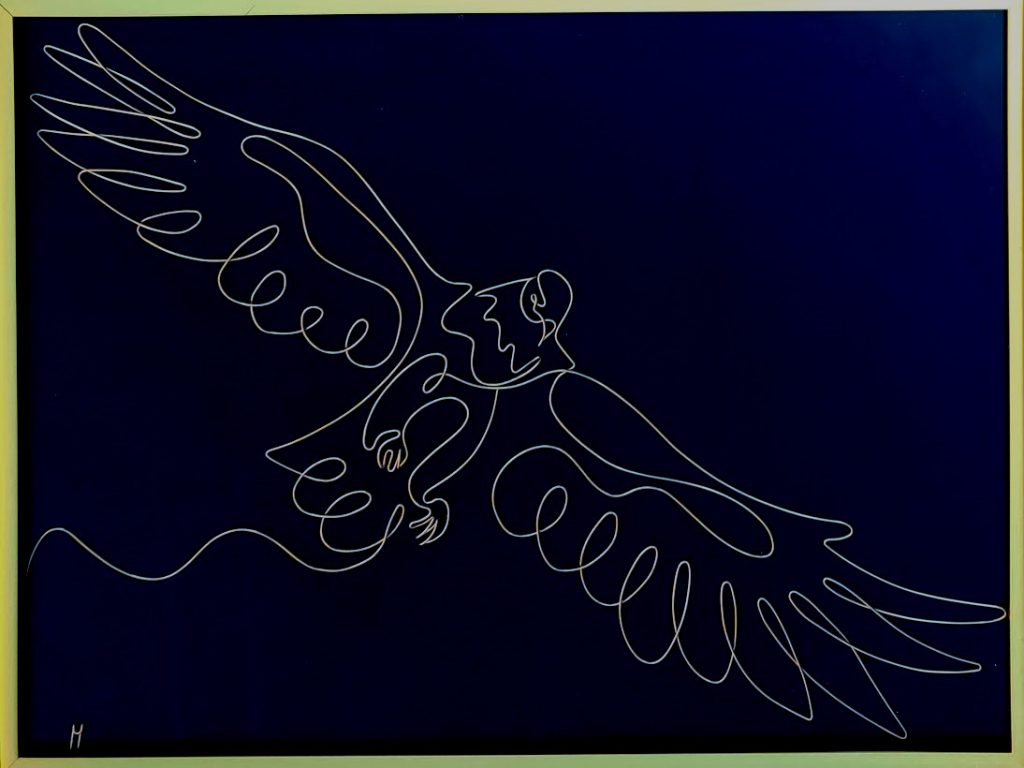 Pegas – Tablou 40×50 cm sculptura in fir continuu de sarma