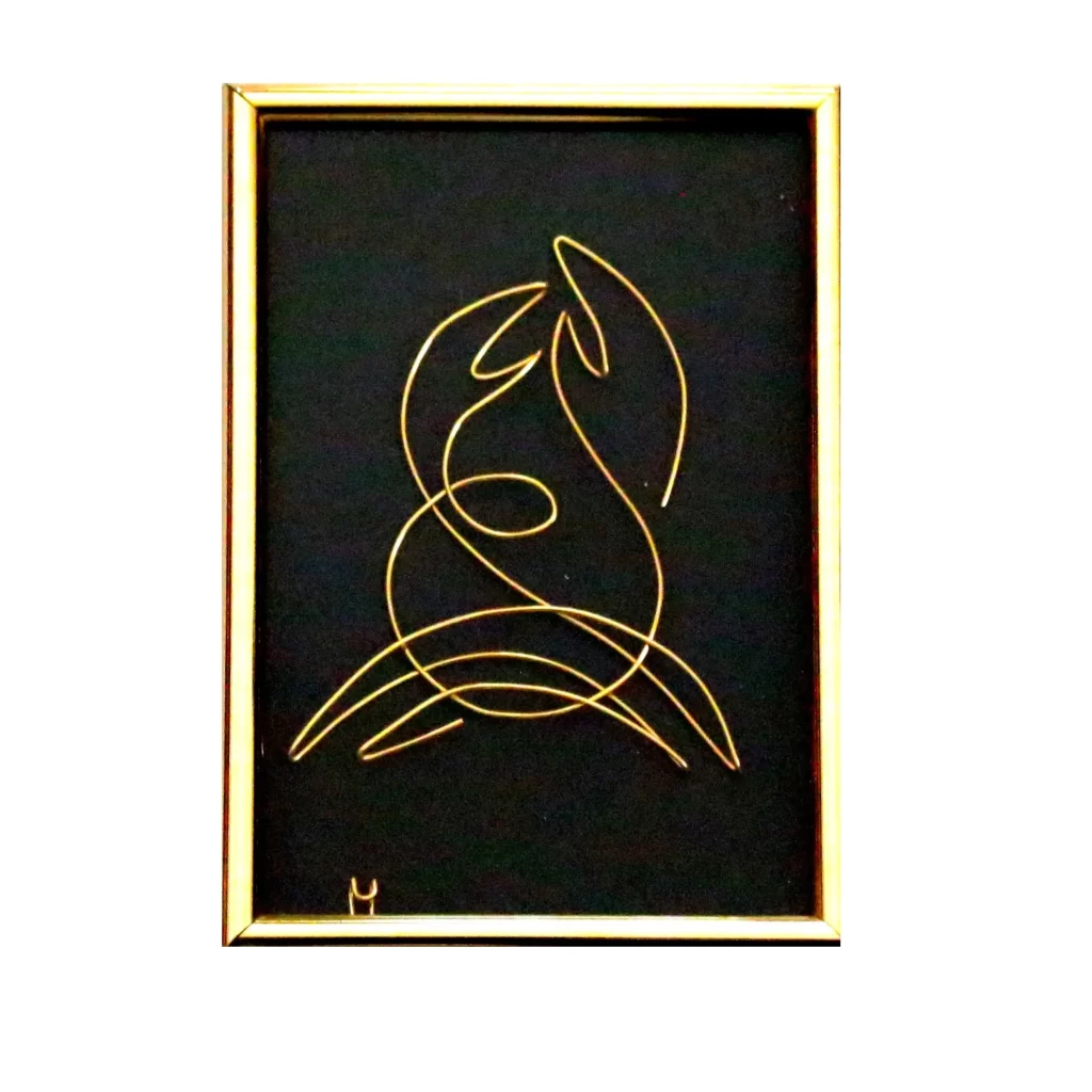 Zodia Berbec – Tablou in fir continuu de sarma auriu de 1 mm, rama neagra 20×15 cm