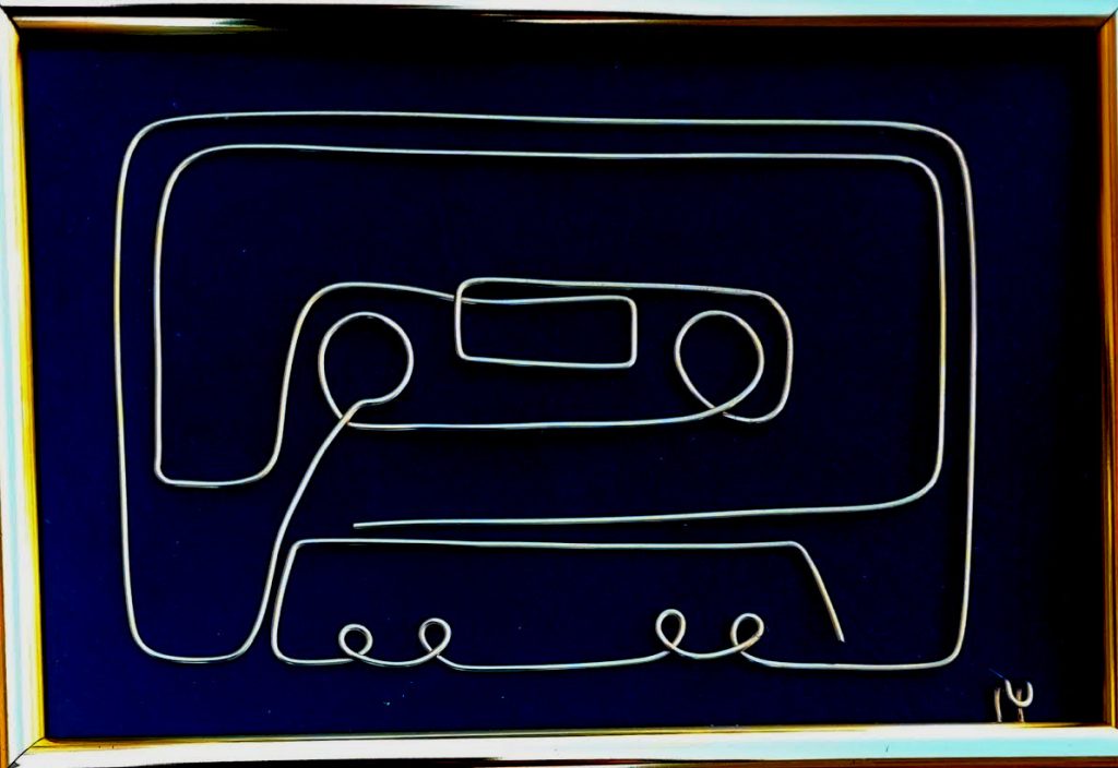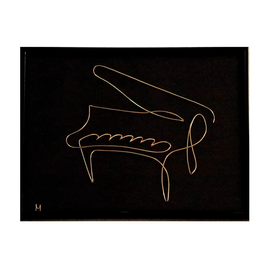 Vioara mare – Tablou in fir continuu de sarma auriu de 1 mm, rama neagra 40×30 cm