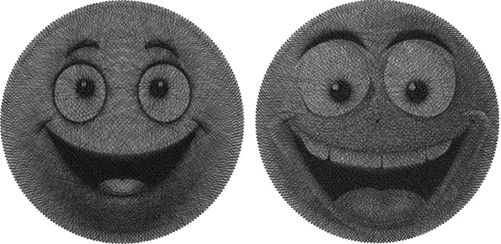 Smiley (2 variante) – Portret String Art din fir continuu de ata cerata – tablou 50×50 cm