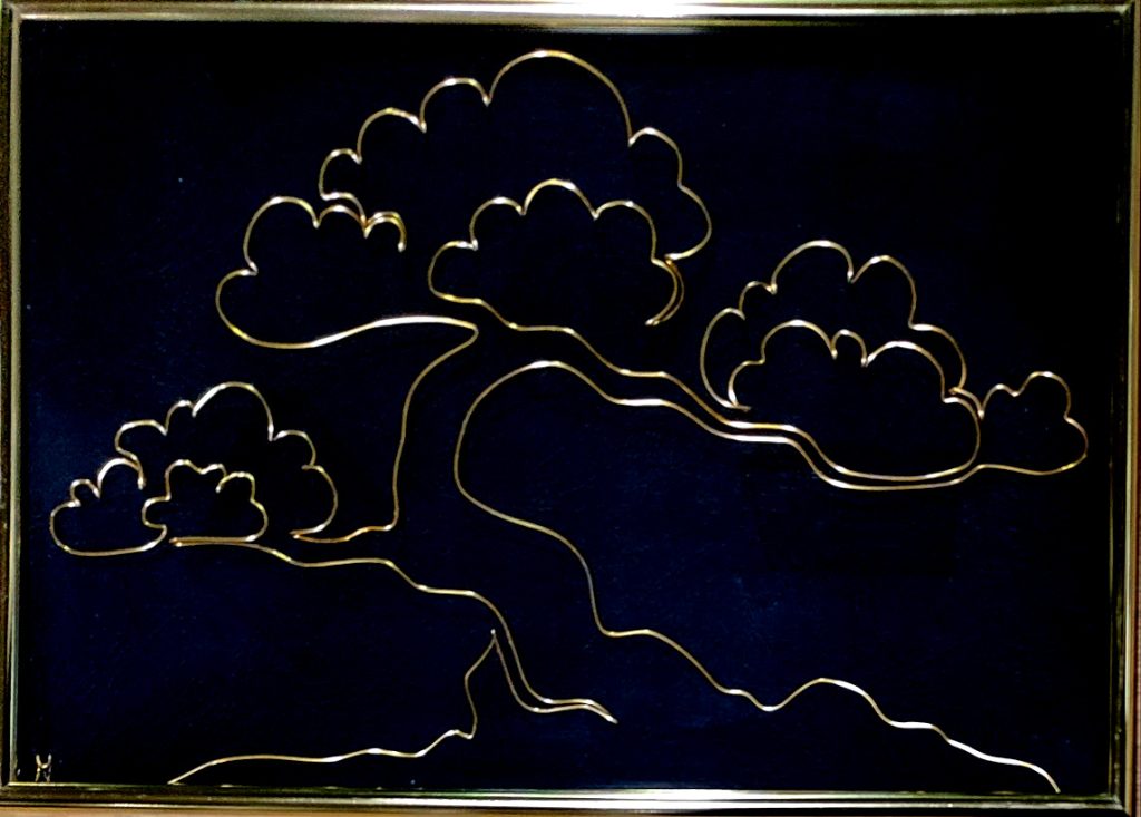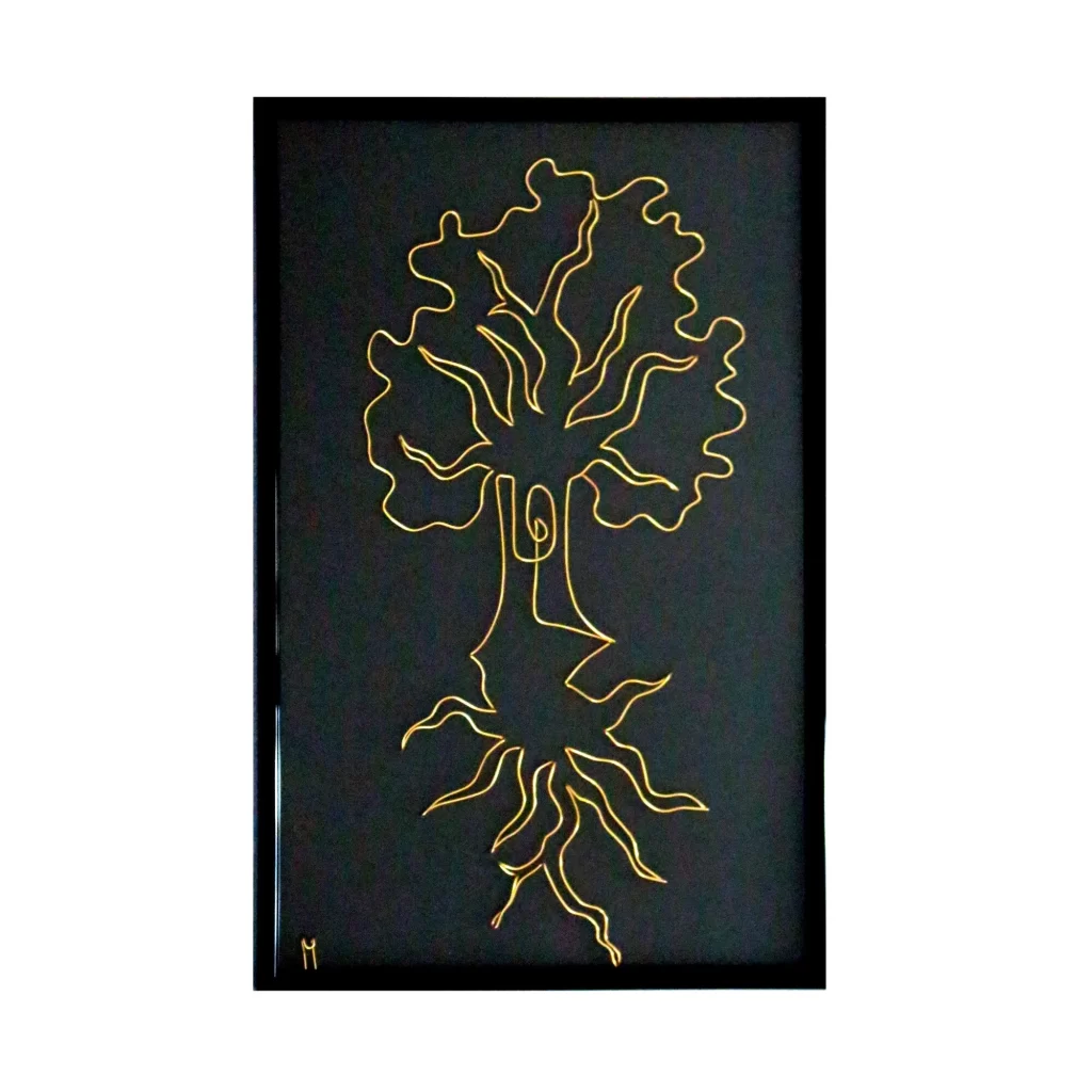 Copacul vietii – Tablou in fir continuu de sarma auriu de 1 mm, rama neagra 40×50 cm