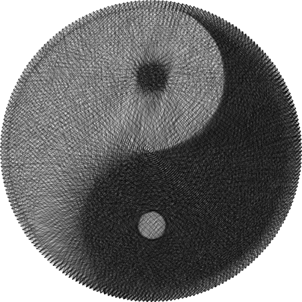 Yin Yang – Portret String Art din fir continuu de ata cerata – tablou 50×50 cm